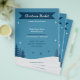 En charmerande julmarknadslapp i blått tonläge med ett snölandskap och dess träd, några snöflingor och stjärnor. Anpassa bara text och använda för lokala Julafton-händelser. Du kan också använda det som festinbjudan eller middag!