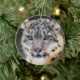 Mycket kall leopard med härlig ansikteteckning, blåttögon och en rosa näsa som täckas med ljust damma av av snö. Underbar gåva för någon som älskar stora djungelkatter.