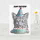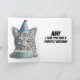 Snöleoparden är AI-genererad. Jag tyckte det skulle vara sött att ha en snöleopard som bär en födelsedags hatt och en födelsedags hatt. På insidan skrev jag Amy Jag hoppas du har en perfekt födelsedag. Och på baksidan skrev jag Tre hejar åt dig Amy. Namnet Amy är redigerbart.