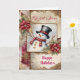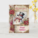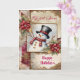 Detta julkort har en snöman i en svart topp hatt, iförd en röd halsduk, som huvudelement på en junk journal-sida. Blommor, snöflingor och förgylld filigran, med text, fullbordar sidan. Mycket vacker och festlig!