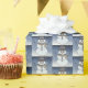 Snöman som ser ut som om den virkades med en snöig bakgrund.