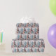 En glad snöman iklädd mysiga vinteraccessoarer skottar en stig genom snön med en röd spade och snöflingor.