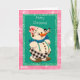 Den här vintage-snömannen är iklädd för kallt väder med rosa mössa och blå halsduk. Hans tealgröna bakgrund är kantad med glitter och sedan inramad med rosa glittrande stjärnor. Texten, teckensnittet och teckensnittsfärgen kan alla ändras för att passa din smak. Klicka på "Anpassa"-knappen.