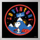Celebrate adventure and imagination with this bold and playful Snoopy-inspired design featuring a charming explorer pup ready to take on the great outdoors. Set against a dramatic black background with a vibrant red border, the scene showcases snowy mountain peaks, a rising sun, and a rolled sleeping bag, creating a fun and adventurous camping vibe. The colorful, distressed-style lettering spelling “Adventure Awaits!” arcs across the top in bright primary tones, adding energy and excitement. Snoopy stands proudly in classic explorer gear with goggles and a scarf, bringing a whimsical and nostalgic touch that appeals to fans of all ages. Perfect for travel lovers, outdoor enthusiasts, and anyone who enjoys a sense of adventure, this design adds personality and charm wherever it is displayed.