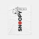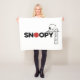 Snoopy relaxerar mot ett sten ovanpå hans namn på engelska och japanska.