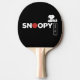 Snoopy relaxerar mot ett sten ovanpå hans namn på engelska och japanska.