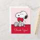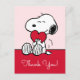 Skicka dina tack med det renaste uttrycket för tillgivenhet! Detta vackra Snoopy-tackkort har den älskade beageln som sött håller ett ljust rött hjärta mot en mjuk rosa bakgrund. Det är det perfekta kortet för att förmedla djup tacksamhet, vare sig det är för en genomtänkt gåva, en snäll gest eller för att fira kärlek vid alla tillfällen. Kortets meddelande på insidan matchar dina hjärtliga känslor. Den klassiska svart-vita Snoopy-illustrationen i kombination med den milda rosa bakgrunden skapar en omedelbart varm och tillgiven hälsning som mottagarna kommer att värdesätta.