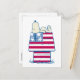 Fira självständighetsdagen med detta festliga Peanuts- vykort som visar Snoopy ligga på sin hundstuga dekorerad med patriotiska dekorationer. Perfekt för att skicka semesterhälsningar, dela din kärlek till 4:e juli eller samla som ett minne, detta vykort fångar Snoopys lekfulla och patriotiska anda.
