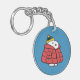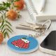 This cheerful, officially licensed Peanuts Snoopy Keychain is a perfect accessory for fans to personalize their gear. The keychain features a durable, round acrylic or plastic charm showcasing a beloved image of Snoopy bundled up in a puffy red winter coat and a yellow-and-blue knit hat, all set against a vibrant sky blue background.