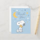 Skicka uppriktigt tack till era gäster och gåvogivare med det här bedårande Peanuts Snoopy och Woodstock tackkortet. Framsidan visar den rörande illustrationen av Snoopy som kramar Woodstock under en strålande halvmåne och tindrande stjärnor, allt mot en lugnande ljusblå bakgrund med en skrivstil som lyder "Tack". Baksidan av kortet är helt anpassat och innehåller ett speciellt meddelande om barnets ankomst och föräldrarnas namn, vilket ger ett charmerande, nostalgiskt och personligt sätt att uttrycka din uppskattning efter er könsneutrala eller pojk-baby shower.