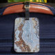 Behålla av bagaget med den här akryliska bagagetaggen som ger en bild av det intrikata mönstren på en slab av Snöre Agate. En underbar presentidé för sten-hound!