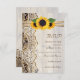 Svarskort från elegant vitt snöre, band, solblommor och bröllop OSA med vitt snöre på trä med två korsade band av beige satin och solblommor. Text i brunt. Observera att snöre, trä och solblommor alla är "tryckta på" och inte äkta tyg eller blommor. Denna elegant, sofistikerad och romantisk design med ett rustiskt innersta, är en del av en uppsättning bröllop och är perfekt för en chic i land eller western fall/höstpalett i bröllop med en färg palett i neutralt.