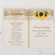 Elegant vitt snöre, band, solblommor och bröllopsprogram som är täckt med vit snöre på beige naturlig burlap eller hessiska med två korsade satin och solblommor. Text i brunt. Observera att snöre, pärlhöns och solblommor är "tryckta på" och inte äkta tyg eller blommor. Denna elegant, sofistikerad och romantisk design med ett rustiskt innersta, är en del av en uppsättning bröllop och är perfekt för en chic i land eller western fall/höstpalett i bröllop med en färg palett i neutralt. Du måste vika i mitten för att få ett hopfogat program. Välj bara den pappra värdetypen när den viks väl.