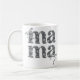En vacker svart och vit design med ord "mamma" i elegant, snöre-belagd brev. Varje brev är förtjust i den ömtåliga blommigten snöre och är knuten till ett snyggt bandbåge som skapar en klassande och hjärtlig hyllning till moderskap.