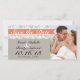 Det här klassiska bröllop spara datum-kortet har en grått-bakgrund och bilder av korallfärgat band av färgad som är täckt av snöre-utseende-trim. Perfekt för en rustik eller vintage inspirerade bröllop. Lägg till ett eget foto för anpassning. Kontakta oss för anpassningsbar färg utan extra kostnad.