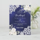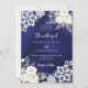 För en elegant och ett romantiskt bröllop. En marin blå, ojämn färgad med vit blommigt, ro och vit snöre. Anpassa och lägg till namn och information. Tillbaka: lägg till webbplatsens URL i QR-koden för OSA och/eller mer information.