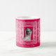 Snöre Ram Retro Pinup Girl Patterned Mugg med originalteckningar av pinupet ©"Cherrie Au Lait - Bath". Shock rosa bakgrund.