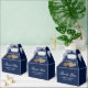 Lägg dina möhippa-/bröllopsgåvor i dessa romantiska, blå favoritlådor för marinmarinen som innehåller vit blommigt snöre och sträng ljus på en bakgrund med en brännpunkt.