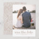 Romantiskt bröllop spara datum-kort i elegant neutralt beige och vitaktigt vitt. Lägg bara till information och favoritfoto för att göra den här vackra designen till din egen.