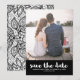 Romantic snöre tittar på bröllop spara datum-kortet i glamoröst svartvitt. Lägg bara till information och favoritfoto för att göra den här vackra designen till din egen.