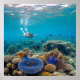 En högkvalitativ grafik av en person som snurrar i ett klart blått hav med en vibrerande korallrev. Denna design är perfekt för ett stort urval produkter för dem som har undervattensprodukter och färjetytor.