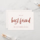 Ett enkelt och minimalistiskt presentkort för att skriva ett personligt och hjärtligt meddelande till din bästa vän på hennes bröllopsdag. Helt anpassningsbart med dina favoritfärger. Du kan lägga till ett meddelande på baksidan, eller lämna det tomt om du föredrar att skriva din hälsning för hand senare.