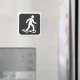 Svart och vit bild av en snöskossymbol centrerad på magnet.