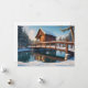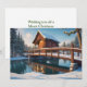 Ett julkort med en snötäckt träbro över en damm, med snötäckta barrträd runt omkring. Designen är skapad av Debbie Quick från Debs Creative Images: www.debscreativeimages.com