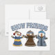 Tre gulliga snögubbear som ha på sig hattar och långa tröjor med, förser med text snövänner som är tillgängliga på att matcha, knäppas, magneter, anpassadehälsningkort, US-portofrimärken, kuvertsälar, förkläden, t-skjortor, sweatshirts och mer snögubbegåvor.