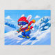Snow Hare Snowboarding on a Winter Mountain Vykort