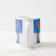 Fotografi av en snöpapp som står i snö på en snölutning mot blå himmel. Bild på båda sidor om mugg. Storleka, stil och färg i mugg är anpassade.