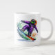 This jumbo size coffee mug is shown in white with a sports snowboarder art print.