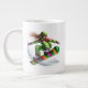 This jumbo size coffee mug is shown in white with a sports snowboarder art print.