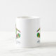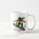 This ceramic coffee mug is shown with a sports snowboarder art print.