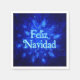 En svärm av blått snöflingor. Den spanska texten som lyder "Feliz Navidad" står i blått och vitt.