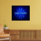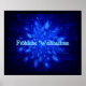 Ett vintertema med en svärm av blått fraktalt snöflingor. Texten "Froehliche Weihnachten" visas i blått och vitt.