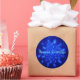 Ett vintertema med en svärm av blått fraktalt snöflingor. Texten som läser "Säsongens hälsningar" visas i blått och vitt.
