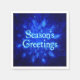Ett vintertema med en svärm av blått fraktalt snöflingor. Texten som läser "Säsongens hälsningar" visas i blått och vitt.