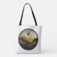 A sticker with an eagle flying over a mountain, in the style of contemporary landscape, golden light, black mountain college, fisheye lens, arts and crafts movement, mid-century illustration