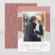 Ett modernt kort och ett helgdag i mjuk färg som innehåller ditt favoritfoto från lodrät eller porträtt på en färgblocksbakgrund med snödrift i ökeninspirerade skuggor av ro och tan. "Gott nytt år" visas under vackra handskrivna manus, med din familj namn under.