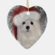 Denna gulliga prydnad presenterar Snowdrop, maltesisk hund för sötsak som en lite ha på sig en Santa hatt som tittar till och med ett frostigt fönster.