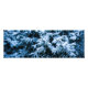Snöfall i skogen. Snöflingor i luft. Snö täckte Julgran. Blå och grönt färg, vinterhumör. God jul och Gott nytt år till er och er!