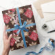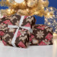 Söt abstrakt snöflingor på mörkens bakgrund papper julomslutning. Helgdag hästar med kakor och kaffe koppar gör det här till en festlig nordisk presentpacka för alla era Julafton-gåvor. Så söt för helgdagarna.