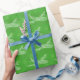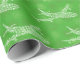 Lots of beautiful snowflakes cluster together to from an airliner on green with more green snowflakes.