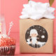 Snöflingor för babyduschdekaler med ett vackert baby med ett sött, vitt snö och hatt på en rustisk snöflingbakgrund. Du kan lägga till text för att anpassa de här söta babyduschklistermärkena.