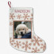 Skapa din egen personlig fotojullåsning för barnen eller dina sällskapsdjur med den här roligten ro-snöflingan i guld. Lägg ditt barns, kattens eller hund foto till faux ro guld glitter ram i gräns i mitten av djurbeståndet. Utrymmet längst upp ovanför faux ro guld glitter snöflingor tillåter personlig så att du kan lägga till namn i en rosa. Bakgrunden av det mjuka vita och grått-träet struktur stil tillför en aning strålande värme till denna anpassningsbar fotojullager som dekoreras i en snöflinga från rosa ros guld i mönster.