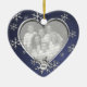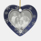Dubbelt foto, hjärtformade ornament i blått med söt snöflingor, med flyttbar datumsnöflinga.
