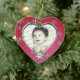 Dubbelt foto, hjärtformade ornament i blått med söt snöflingor, med flyttbar datumsnöflinga.