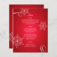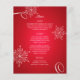 Snowflake Elegance vinterbröllopsmeny i rött med dekorativ vit snöflingor och anpassningsbar tillgänglig på både framsidan och baksidan efter behov.