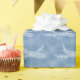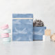 Mängder av vackert snöflingor-kluster tillsammans till från ett flygplan i blått med mer blått snöflingor.